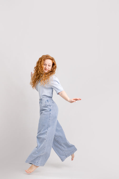 Top premium din merinos extrafin, lucrat cu atenție la detalii, bleu ciel. S-umeri 40, bust 100, lungime 56. imbraca și M.