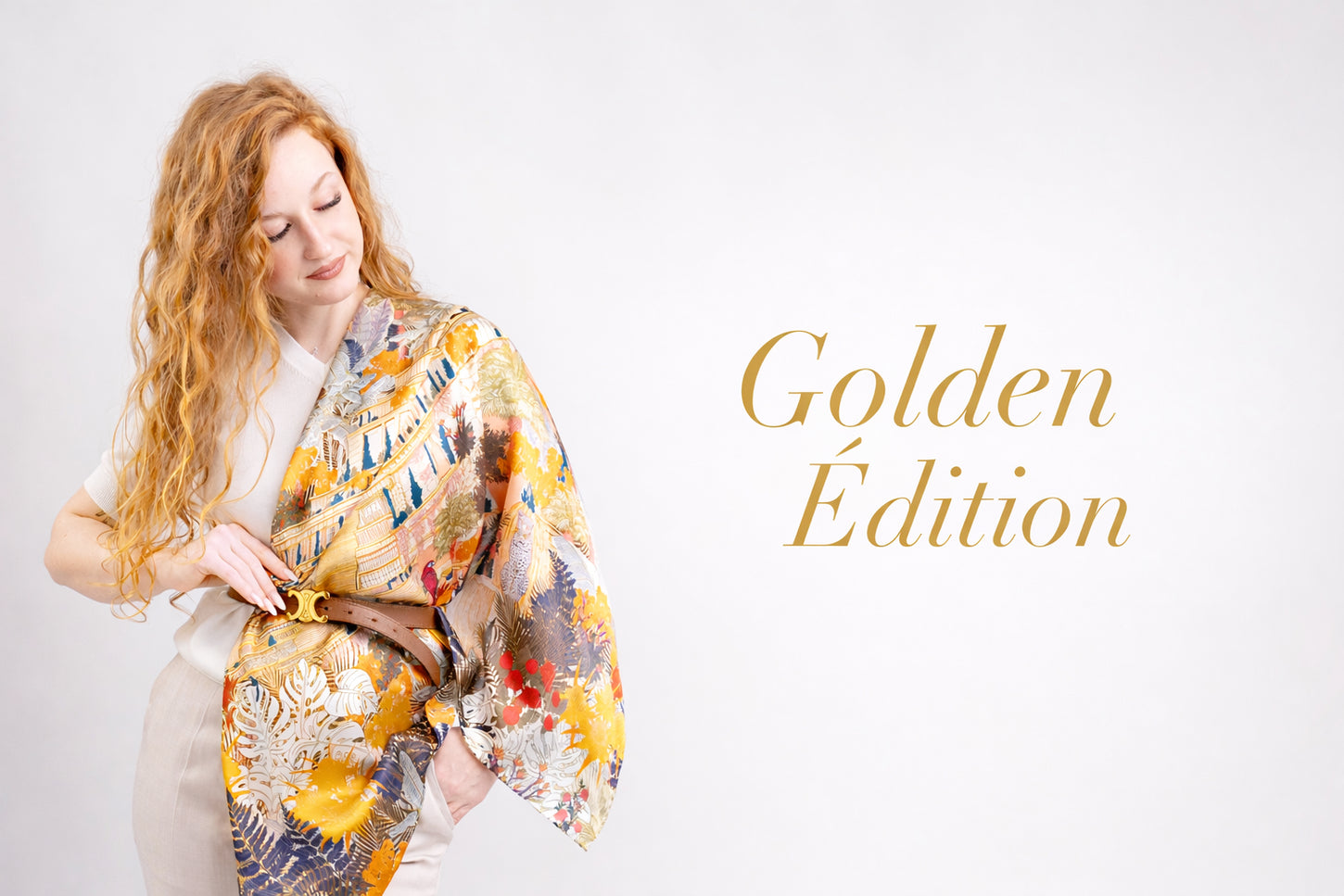Eșarfă premium franțuzească din 100% mătase naturală extrafina, 85/88.