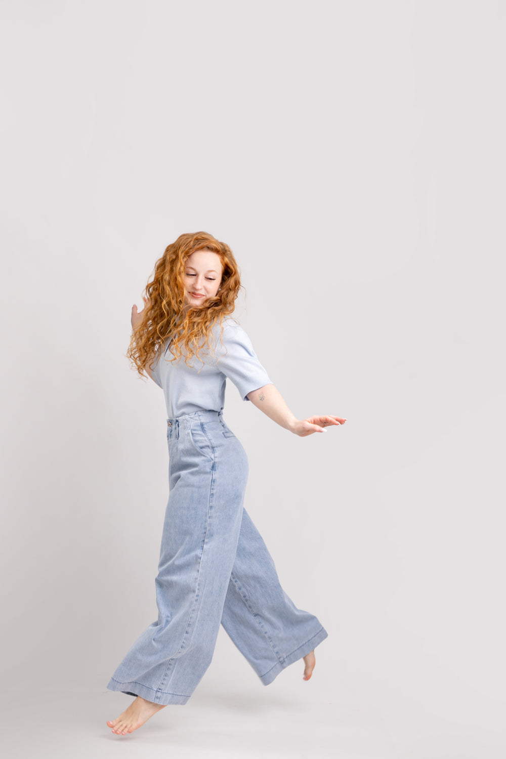 Top premium din merinos extrafin, lucrat cu atenție la detalii, bleu ciel. S-umeri 40, bust 100, lungime 56. imbraca și M.